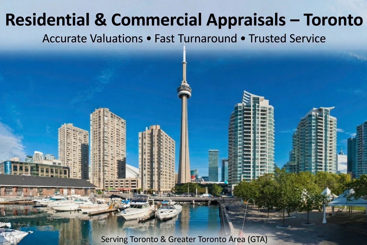 We provide professional real estate appraisal services across Toronto and the Greater Toronto Area (GTA). Our certified Toronto real estate appraisers deliver accurate home, condo, and commercial property valuations in Toronto, North York, Scarborough, Markham, Whitby, and surrounding communities. Whether you need a home or commercial appraisal, our team ensures reliable reports and expert guidance tailored to each property.